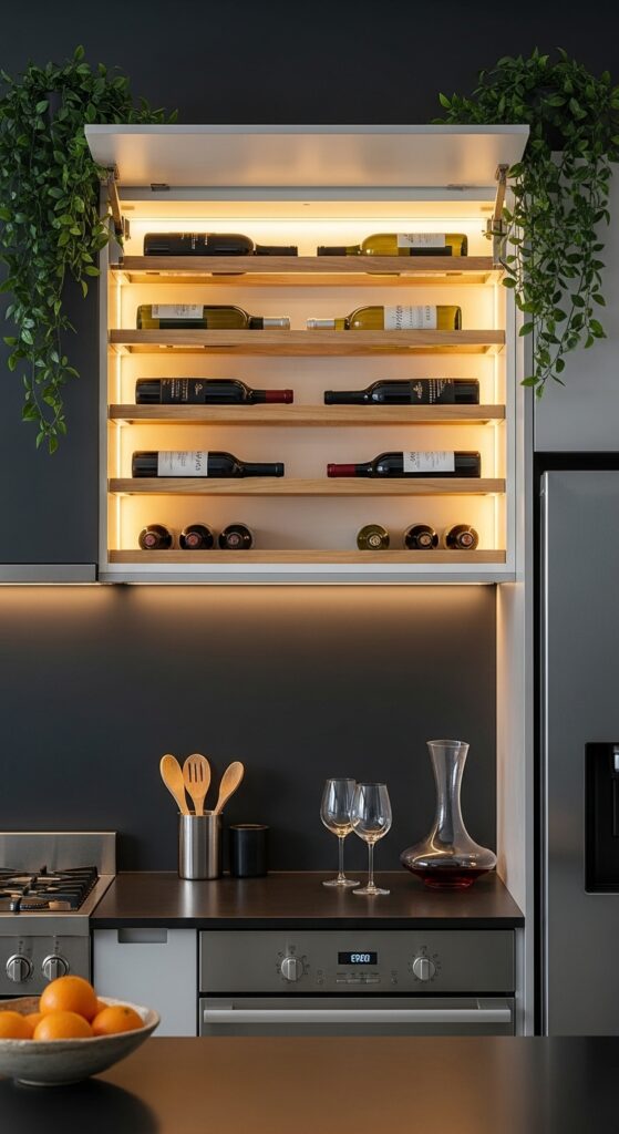 You can even build a mini glass rack underneath the cabinet for hanging stemware. Just imagine walking into your kitchen, grabbing a glass, reaching up for a bottle it’s got that cozy evening-in feel but with a dash of elegance. And hey, it saves a trip to the basement wine rack. Win-win.