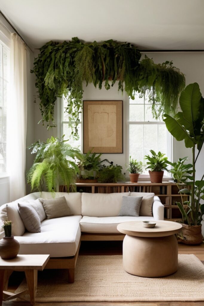 Plants don’t care about symmetry. They spill, climb, and bend in their own direction, which is perfect for awkward corners. A tall fiddle-leaf fig or trailing pothos fills dead zones that otherwise look like accidents.