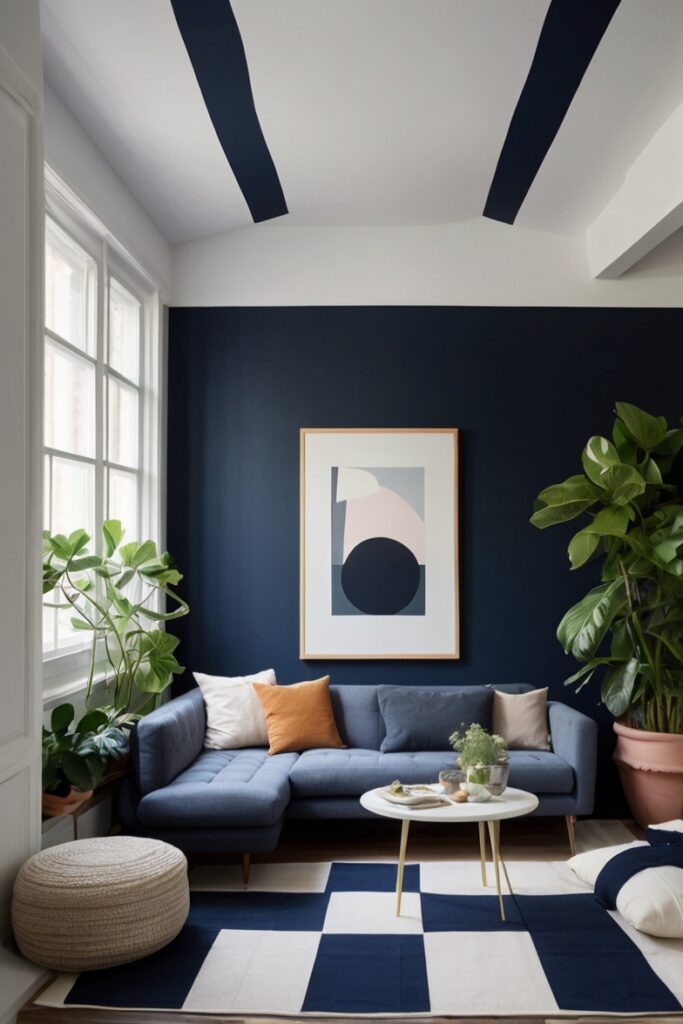 For 2025, designers are playing with bold half-paint techniques. Imagine a diagonal stripe cutting across a wall, echoing the angle of the room. Suddenly, the “mistake” is now a pattern. It feels graphic, modern, and deliberate.