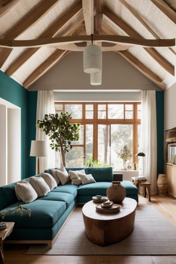 Some awkward living rooms aren’t odd because of their walls, but because of their height changes. You might have a step up, or a slanted ceiling that feels like it’s trying to squash you. Instead of hiding it, make it a feature.