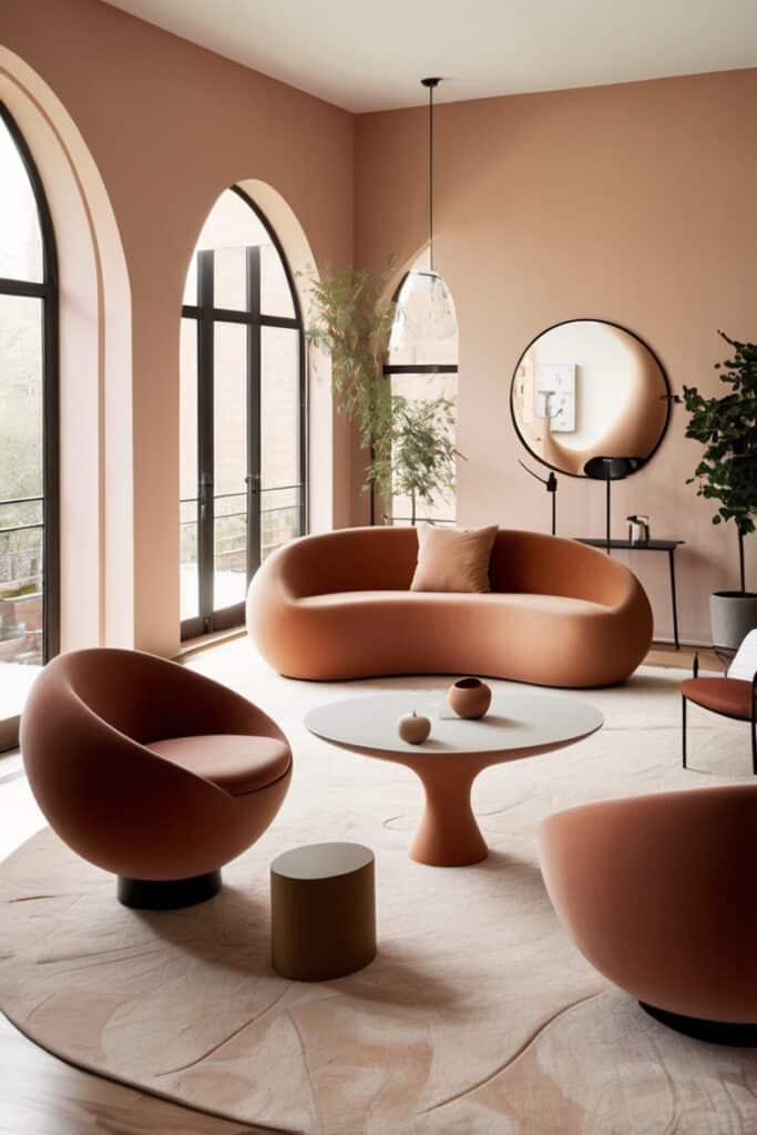 Curved furniture also helps traffic flow. People glide around it without bumping into sharp corners. 2025 is leaning hard into rounded silhouettes anyway, so it’s right on trend.