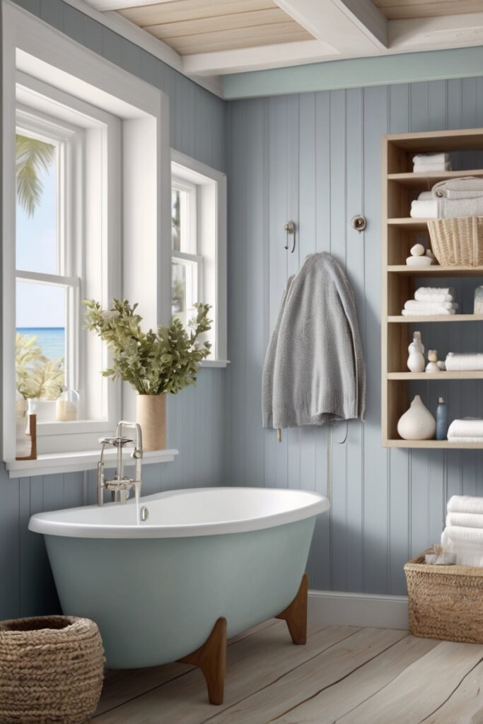 Bathrooms usually ignore ceilings, which feels rude now. Coastal designs in 2026 are giving ceilings soft texture and color, inspired by overcast beach skies. Pale blue-gray limewash, clouded white plaster, even faintly pearled finishes that catch light differently through the day.