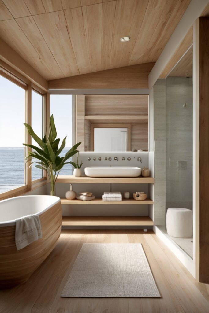 Add a skylight if you can. If not, fake sky light with soft, diffused ceiling panels that change tone through the day. Slightly warmer in the morning, cooler at night. It messes with your brain, gently. Finish with a rainfall shower head that’s slightly oversized, because the sea never falls neatly, does it.