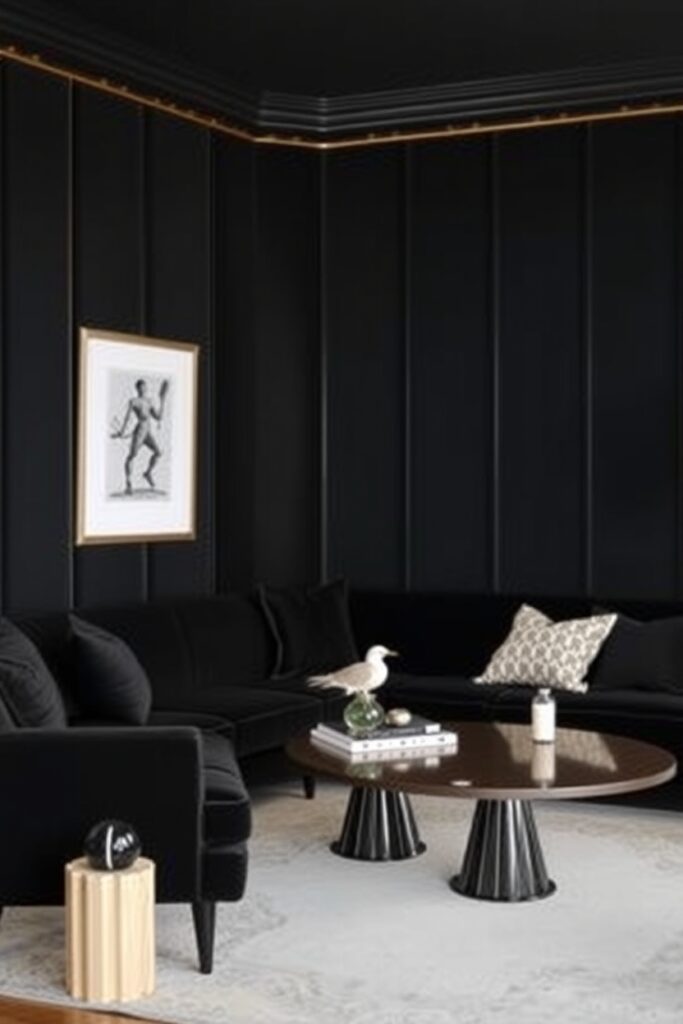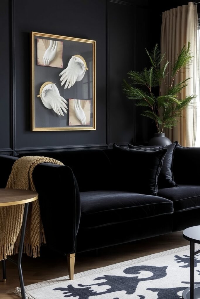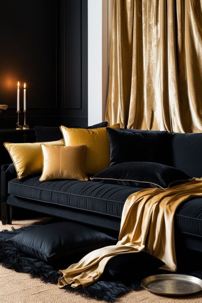 Black doesn’t always need to be shiny and sleek. Sometimes it wants to be soft. Think plush black velvet sofas that look like they’ve absorbed the night. Add a touch of brushed gold on the legs, maybe even a thin trim along the base.