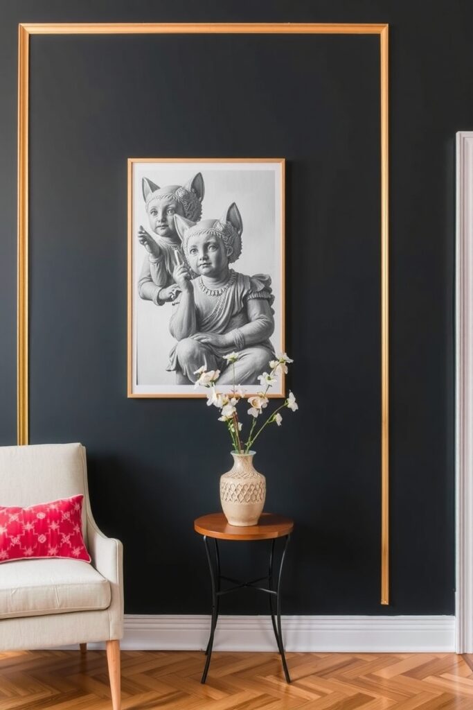 Install a thin gold frame or molding around your black accent wall, the ceiling, or even the doorway.