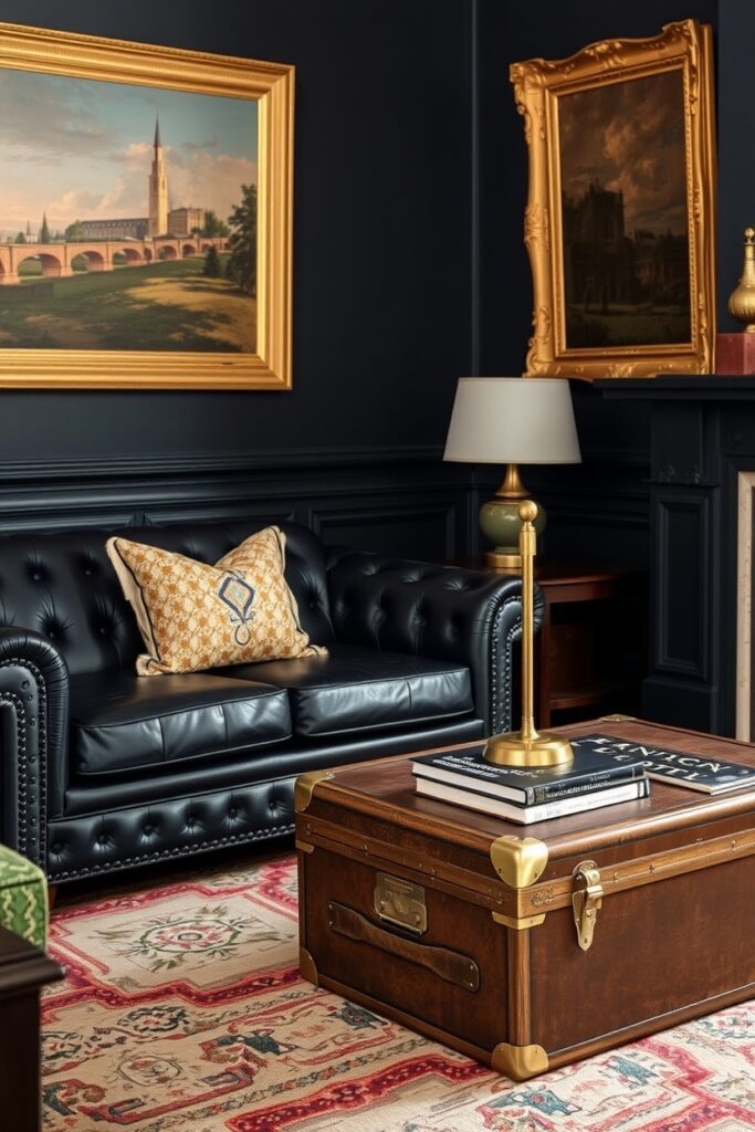 Old-school charm never really dies. It just changes its perfume. Picture a black Chesterfield sofa, golden framed paintings (not prints, paintings), and an old trunk-turned-coffee-table with brass edges.