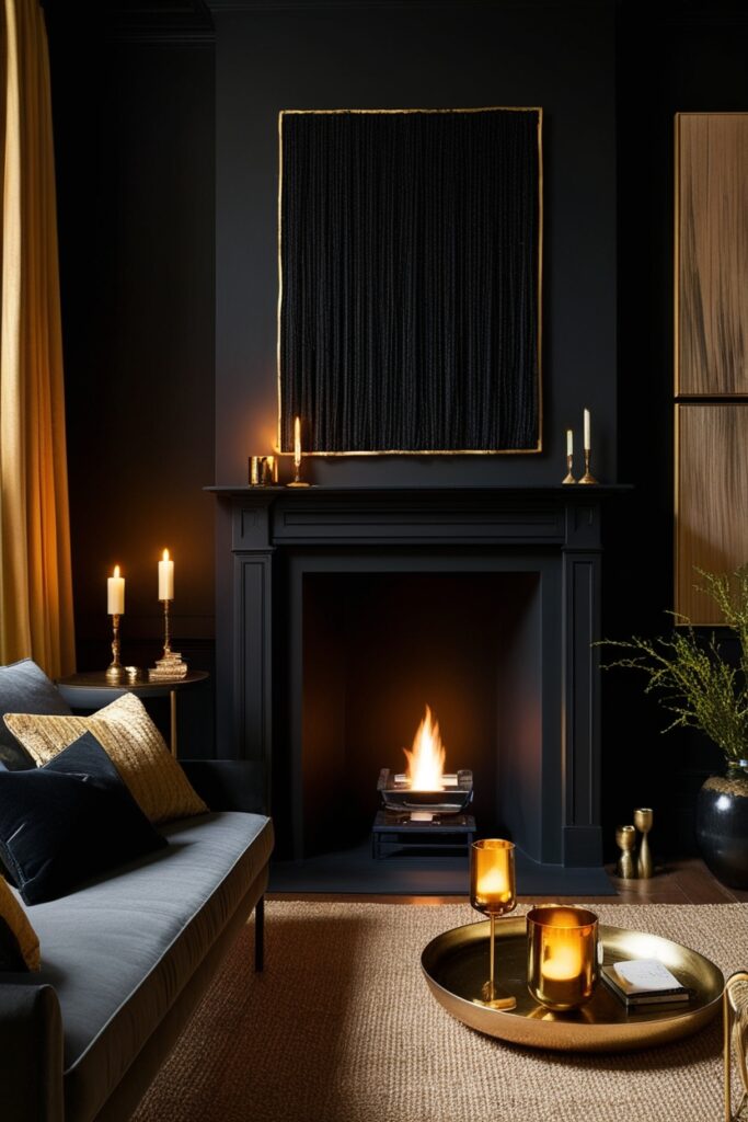 Use layered lighting small gold sconces, candles, even low-level floor lamps. Let corners stay dark.