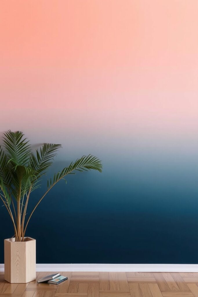 Imagine a living room wall that fades from dusky coral at the bottom to deep ocean blue at the top. It’s moody and meditative.