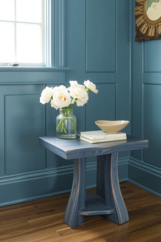 Even a single blue-stained side table can shift the tone of a whole room modern but organic, like it’s been touched by saltwater and time.