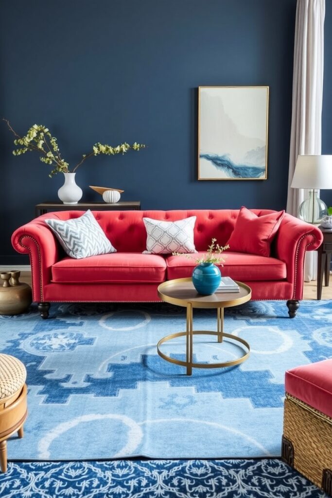 Go for faded coral, not candy. A touch of terracotta, a whisper of rust. Then place a storm-blue sofa on top. Add brass feet, soft throw, sunlight. Done.