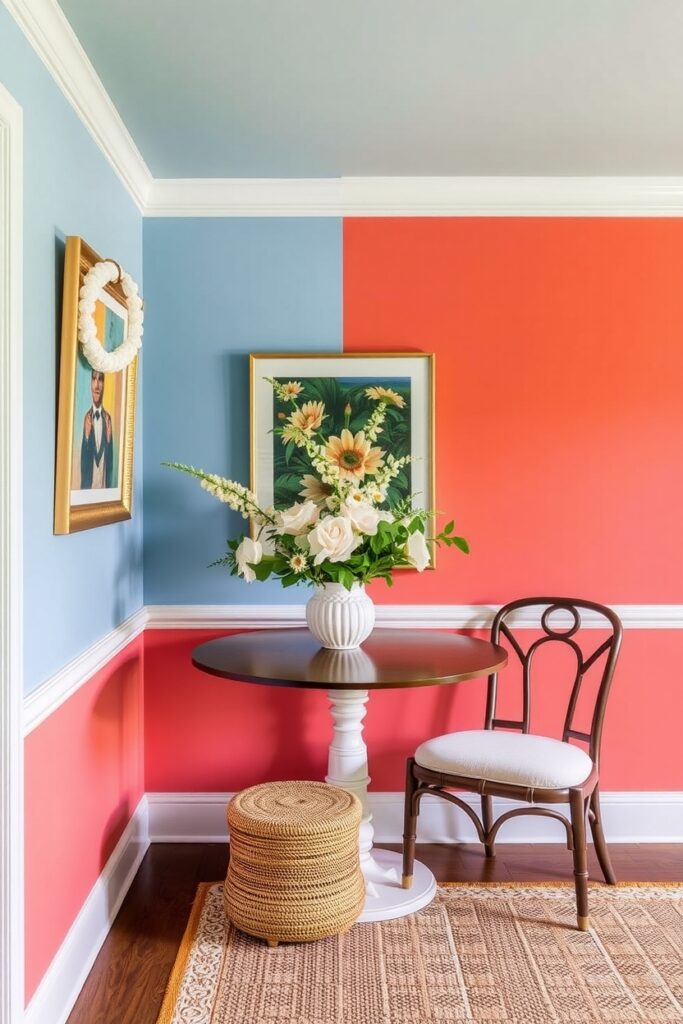 In 2025, walls aren’t staying one color anymore. Designers are splitting them half one tone, half another. For blue and coral, it’s a dream.