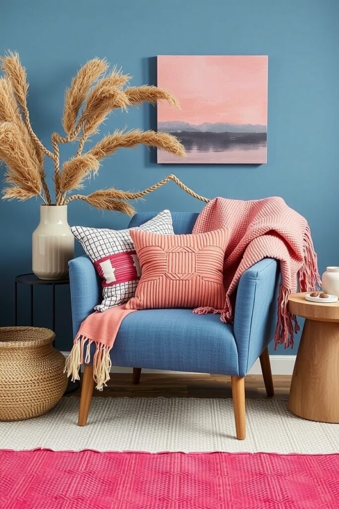 Here’s a secret: blue and coral rarely clash if you layer them right. The trick is tone. Muted coral and dusty blue, side by side, always feel soft and intentional.