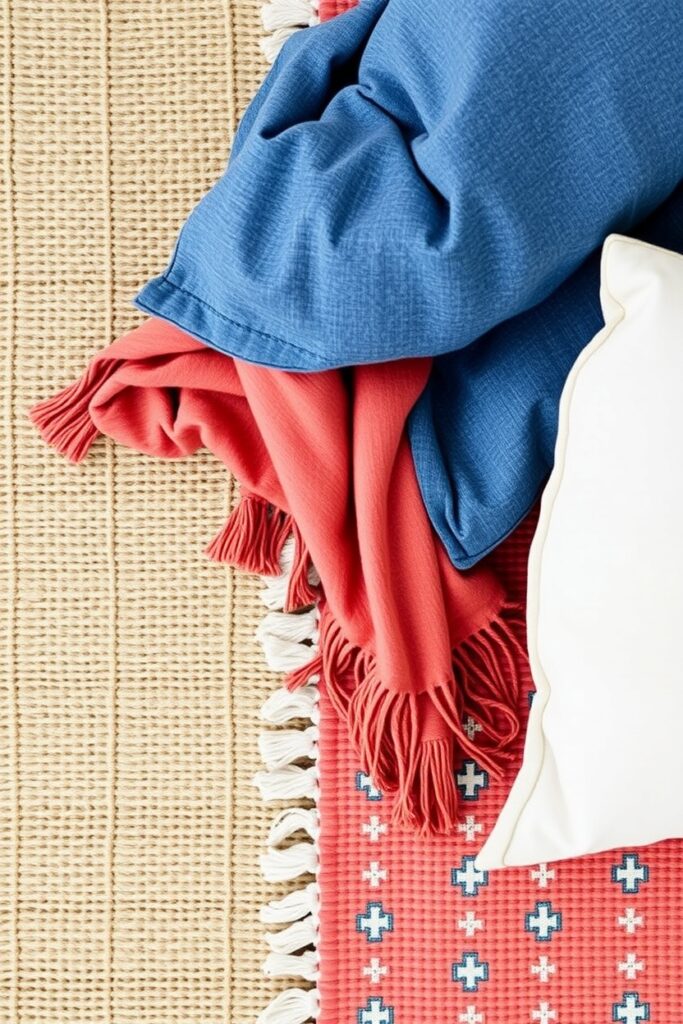Lay a coral jute rug over a faded indigo kilim. Toss denim linen pillows beside a salmon wool throw. The blend of weaves and colors makes the space feel personal, not curated.