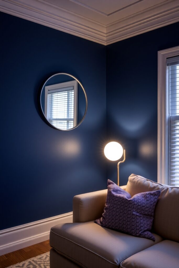 Paint it a deep indigo-blue. Add a circular mirror not for reflection, but for light play. Then place a dimmable silver floor lamp beside it. The mirror catches the glow, spreads it like liquid light.