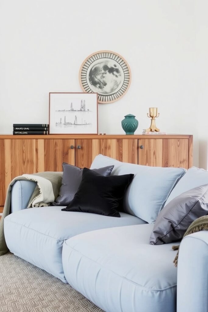 Layer it with velvet silver cushions that aren’t too shiny. Add a blue-gray rug underfoot with abstract threads of light. It’s comfort meets sophistication without trying too hard.