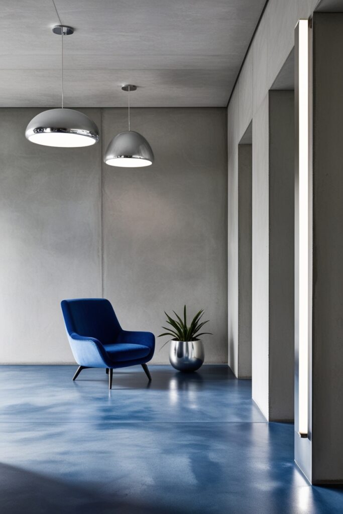 In 2025, texture is everything. So try this polished blue-gray concrete floors or walls, paired with floating silver light fixtures.