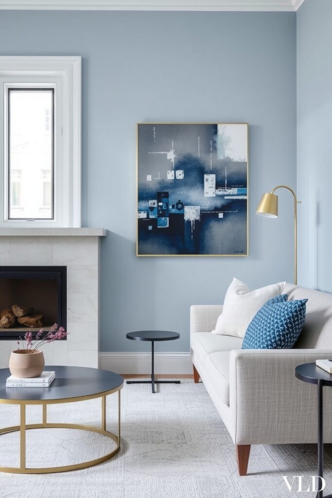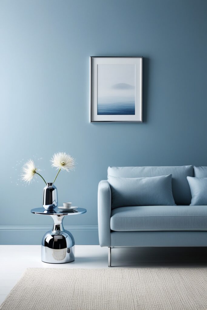 Try icy blue walls with matte silver accents maybe a floating metal shelf, a frosted glass lamp, a single abstract painting in smoke and cobalt. Leave negative space. Let the air breathe.