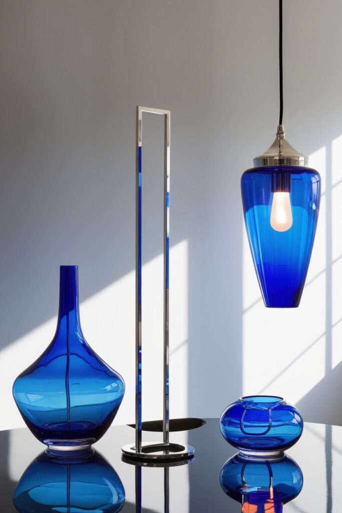 Introduce blue-tinted glass pieces a vase, a pendant lamp, maybe a tabletop. When the light hits, it spills color like water.
