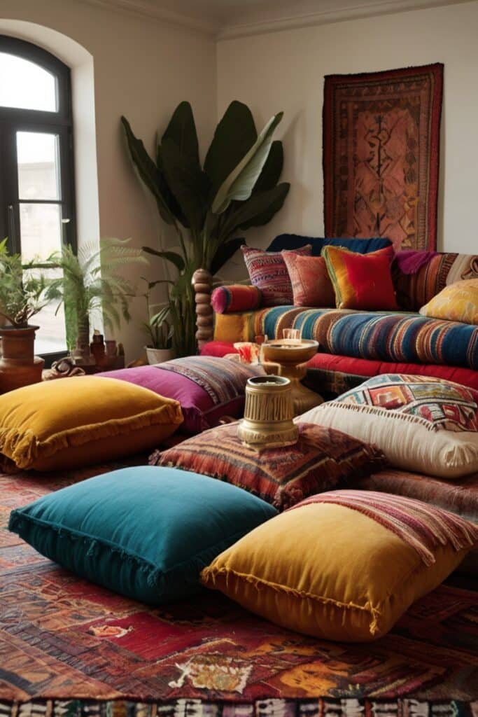 Guests don’t just sit, they lounge, flop, nest. That relaxed vibe screams boho spirit.