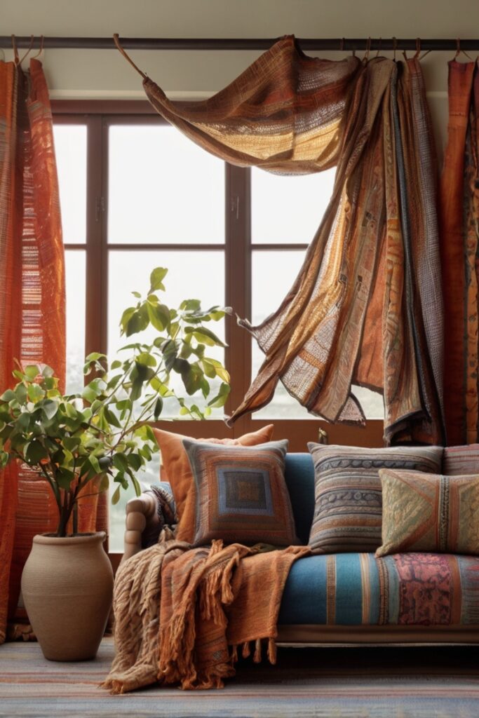 Plain paint is lazy. Cover walls with fabric panels, woven mats, macramé hangings, or even layered scarfs. Let your hands want to touch the room.