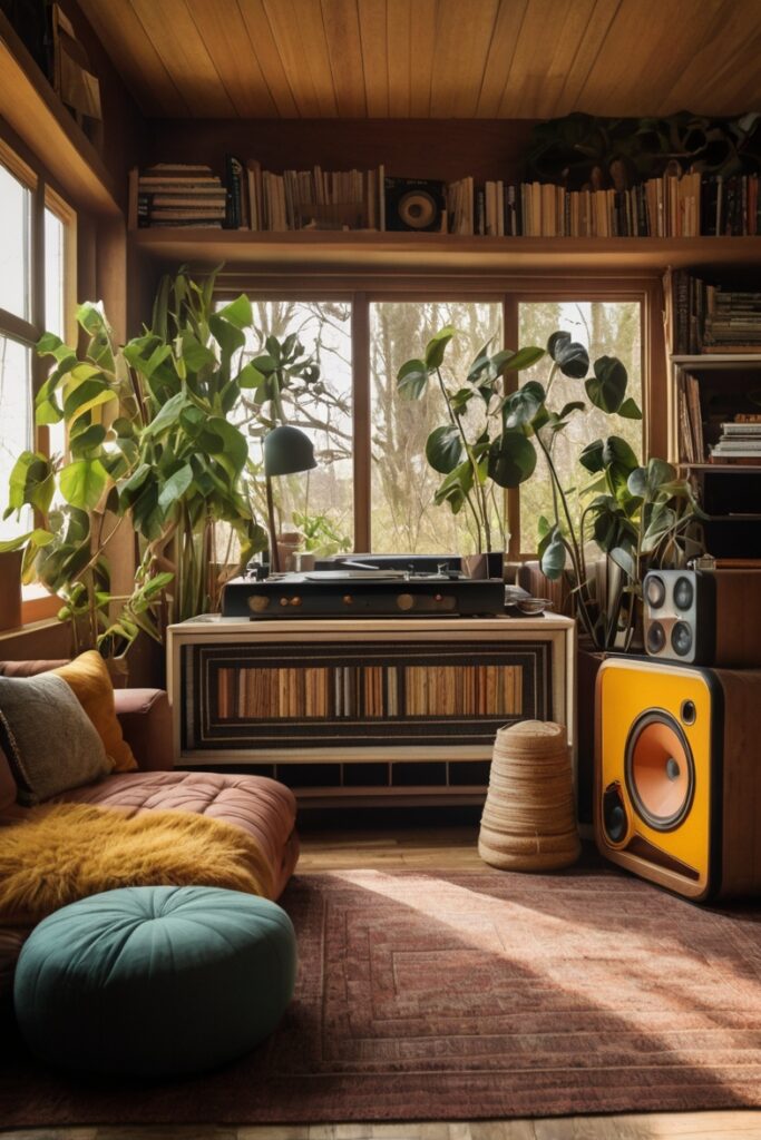 Your living room should sound as much as it looks. A corner with a record player, stacks of vinyl, maybe even a quirky boombox from the 80s.