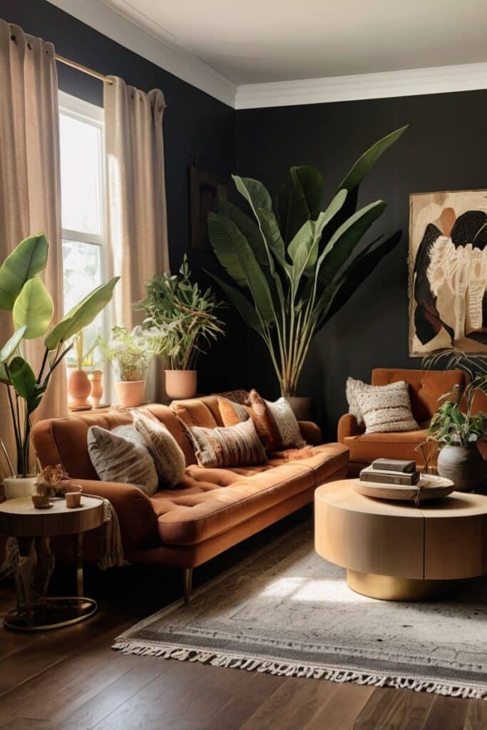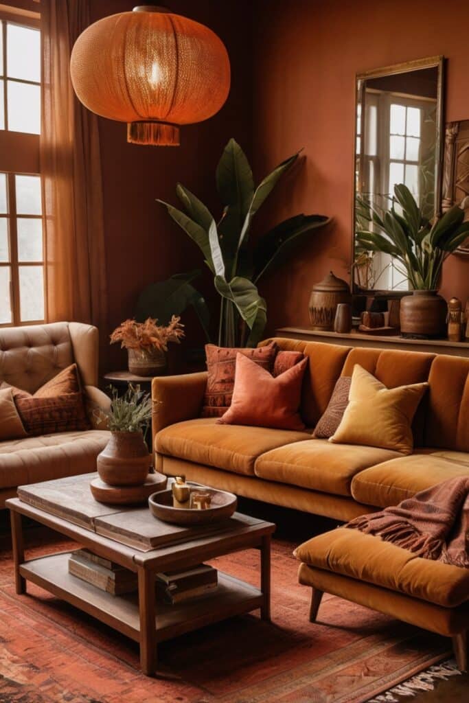 Rusty copper isn’t for the timid, but if you want a boho living room that makes people say “wow” before sitting, this is the one.