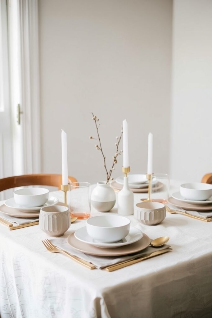 Use a simple flax linen tablecloth, handmade ceramics, and neutral candles. Let space breathe between the objects. The beauty here lies in quiet restraint.