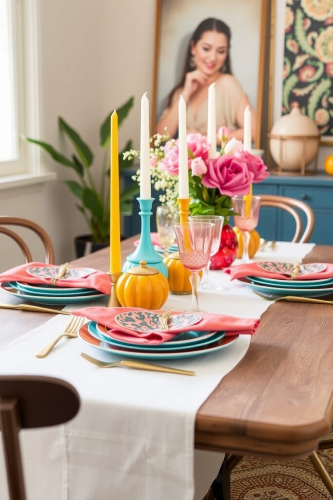 The trick is balance. Keep your table base neutral maybe a white or cream runner and let the accessories sing. Think of it like a joyful melody in color form.