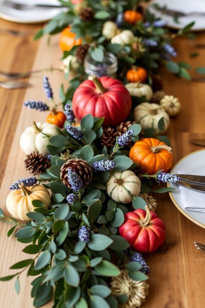 Lay a few eucalyptus branches across the center, then tuck in bits of lavender or rosemary. The smell alone can transport you. Add a few small pumpkins or pomegranates for texture.