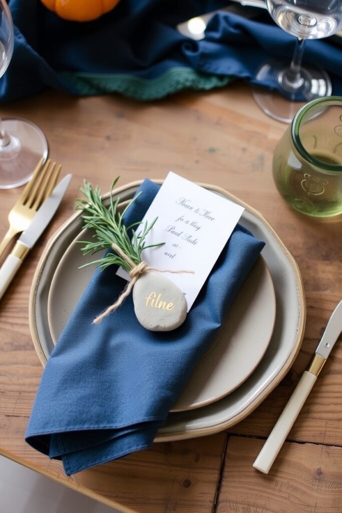 Traditional place cards? Too formal. Try something unexpected. Write names on torn pieces of craft paper and tie them with twine around a sprig of dried herbs. Or use small stones and write names on them with gold ink it feels earthy and personal.
