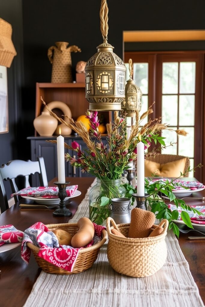 Boho always has a hint of the traveler’s heart. Bring the world to your Thanksgiving table. Use Moroccan lanterns for light, Indian block-printed napkins, or woven African baskets filled with bread or fruit.