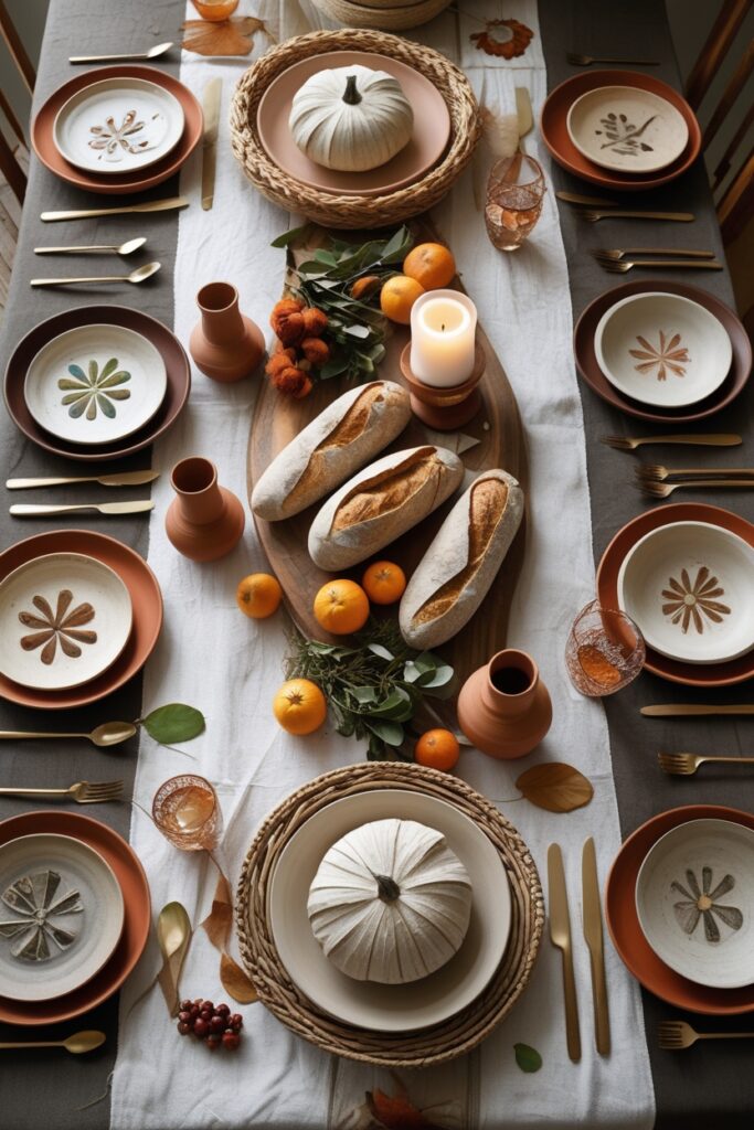 This idea celebrates handmade beauty. Think ceramic plates from local artisans, linen napkins dyed with natural pigments, and woven baskets filled with bread.