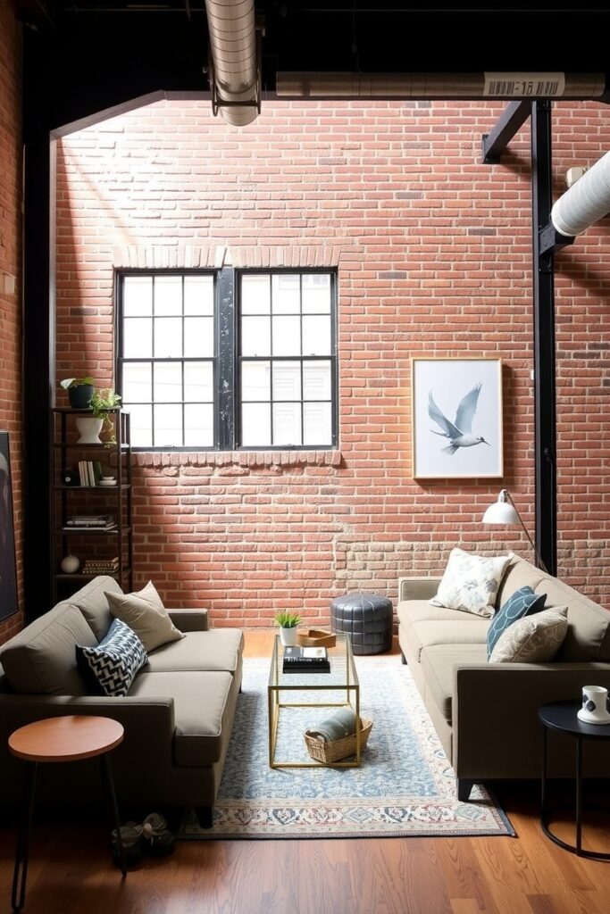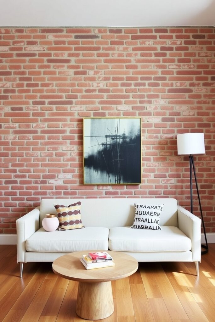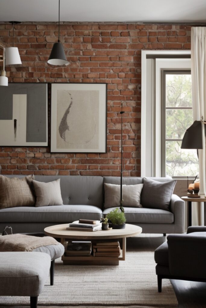 Who said minimalism can’t have texture? A single exposed brick wall behind a clean-lined sofa can ground the entire space.