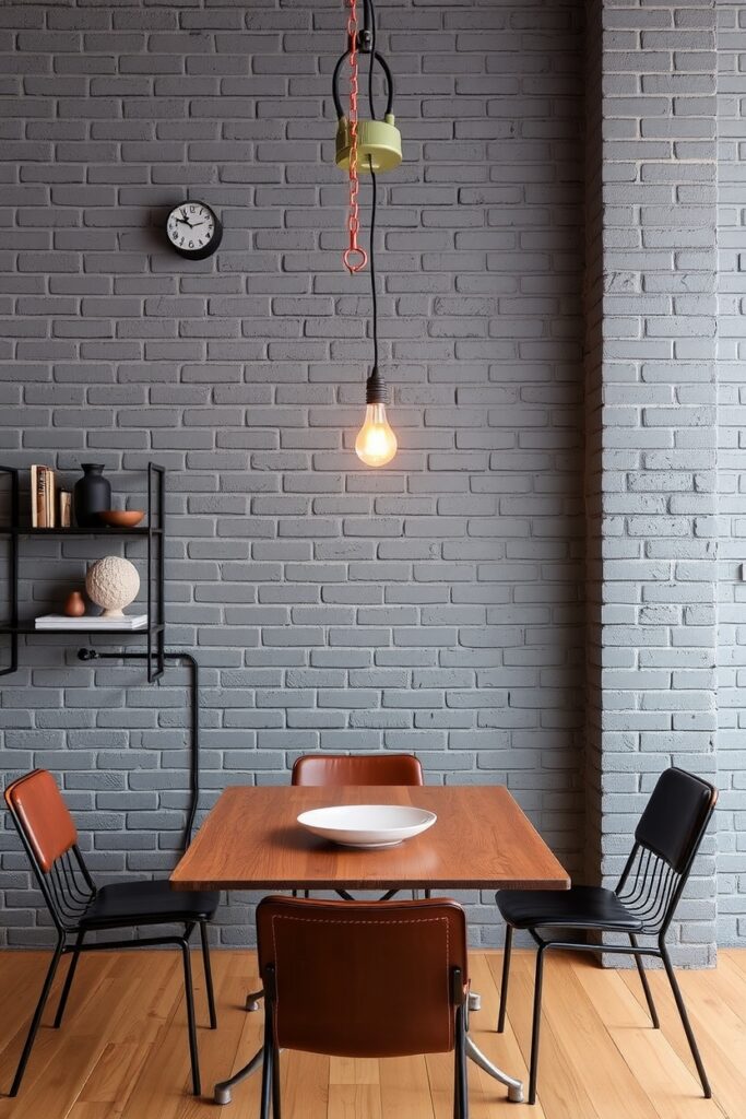 Gray brick, especially when it’s matte and cool-toned, brings that mood. Imagine black metal shelves, leather chairs, and a single hanging bulb with a visible filament.