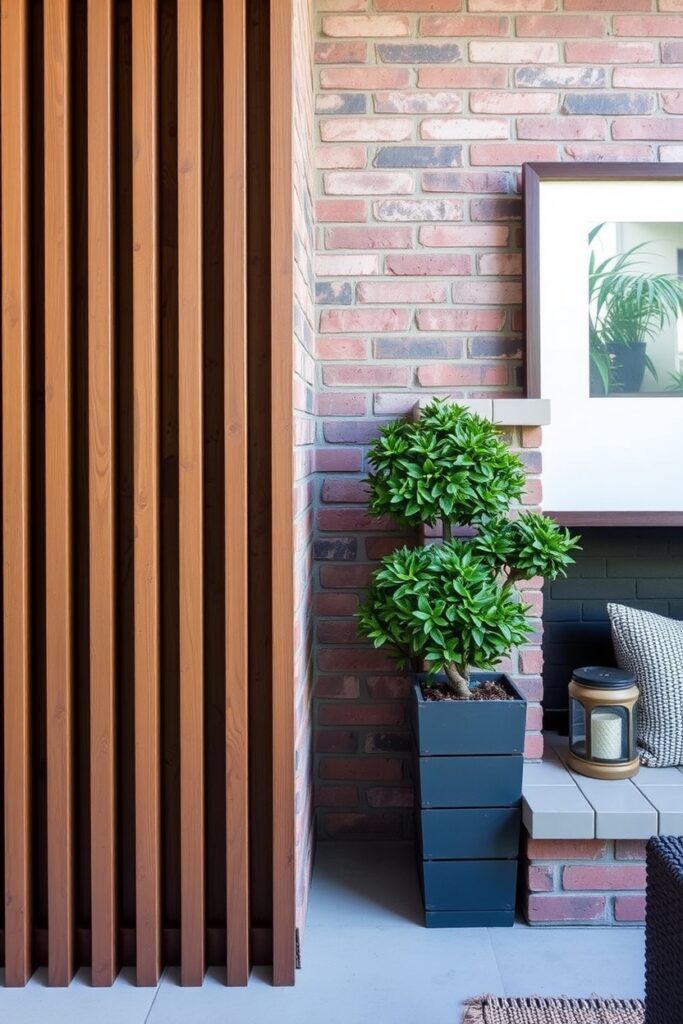Try vertical wood slats beside a rough brick feature texture meeting texture. It’s the kind of combination that feels natural but looks expensive.