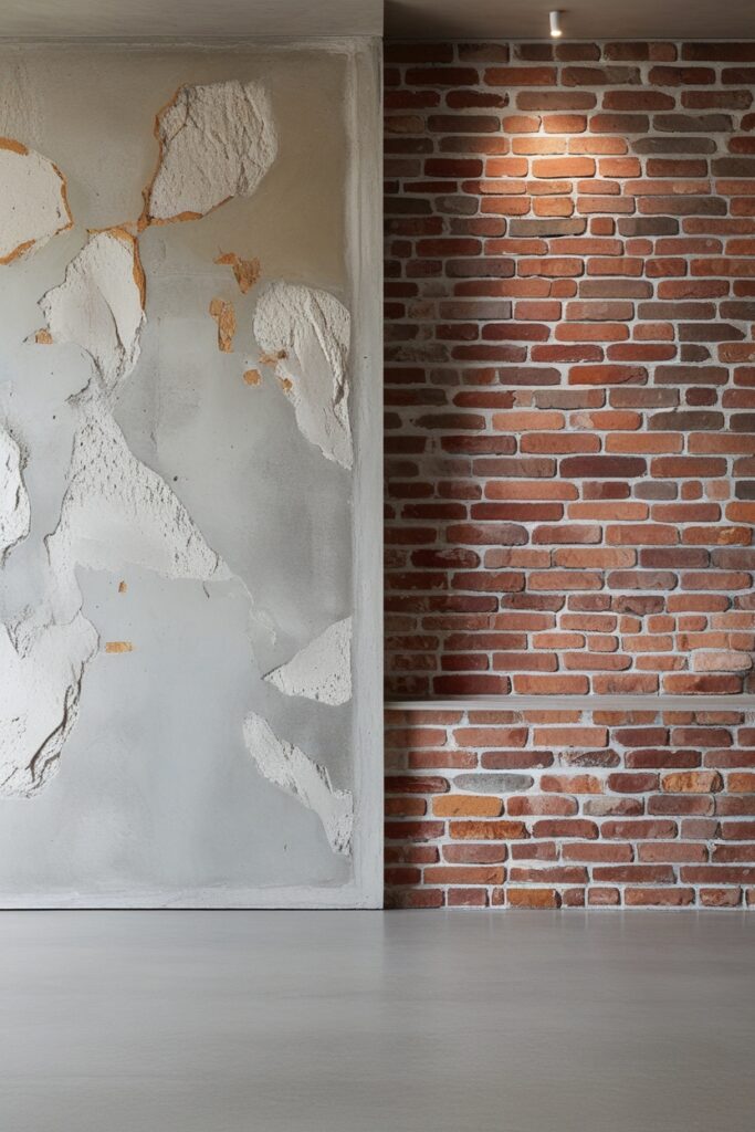 Maybe your wall’s got cracks, faded mortar, or stains that refuse to go. Don’t cover them. Embrace them.