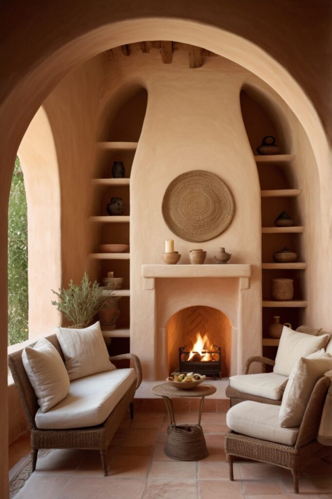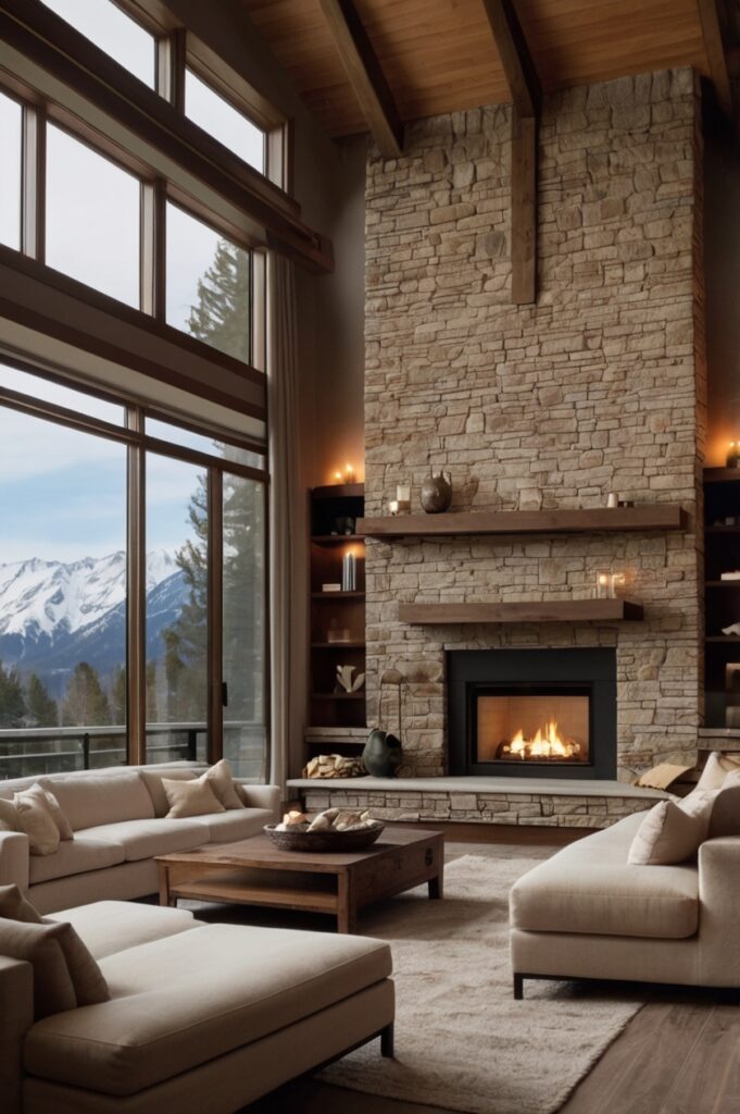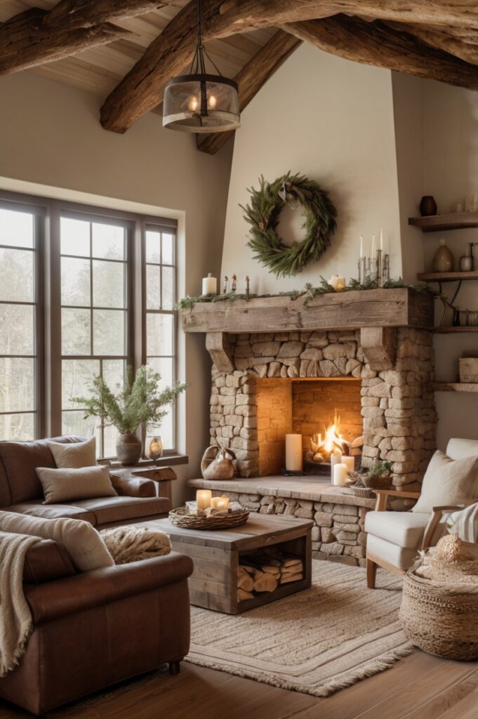 The contrast is rich. Earthy textures catch firelight in ways drywall never could.
