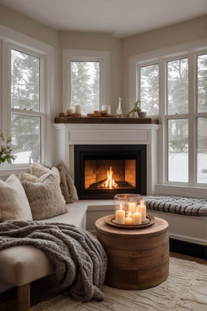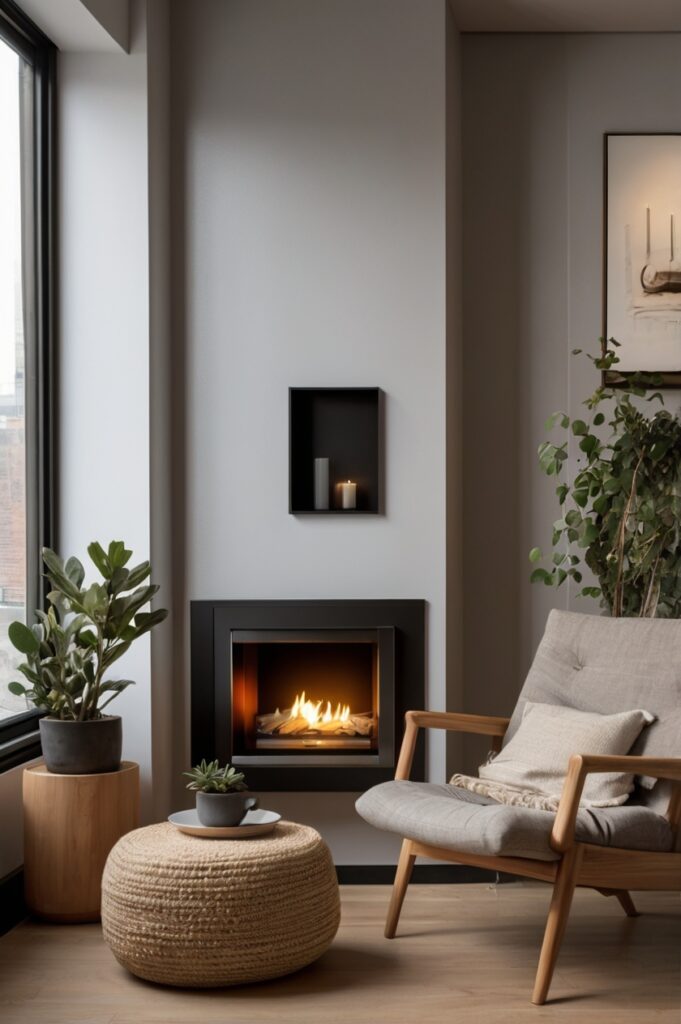 Suddenly the fire isn’t decoration it’s the heartbeat of a reading nook.