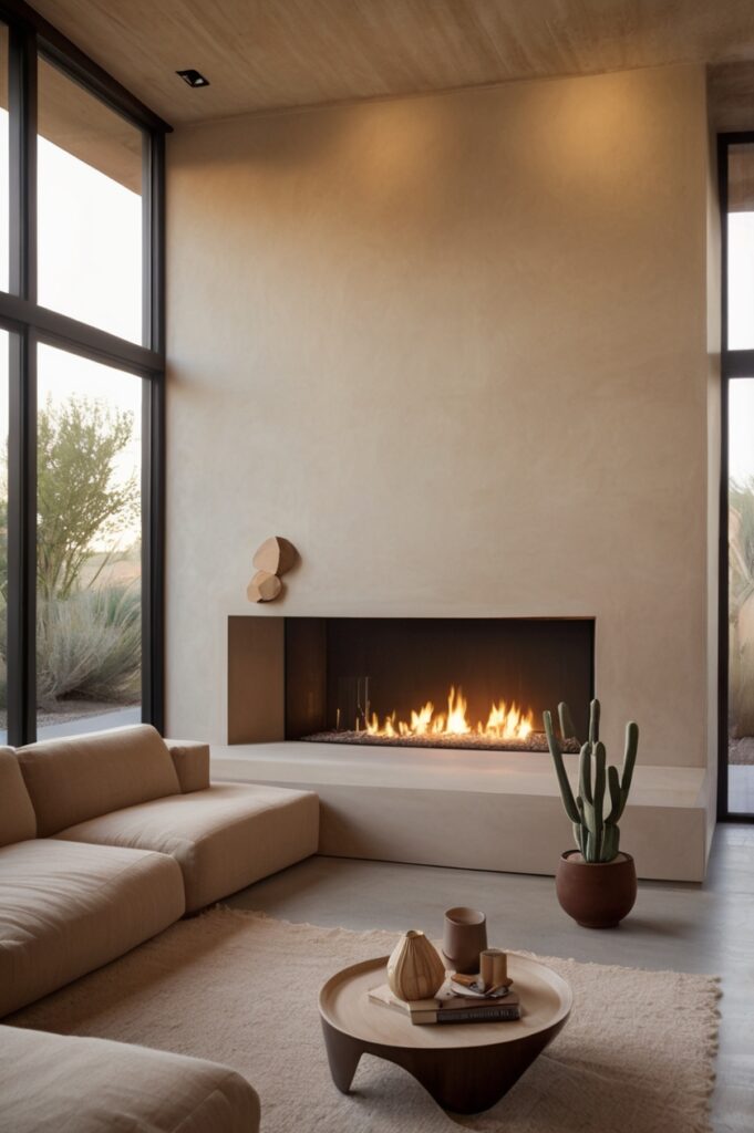 9. Textured Plaster Walls with Fire Cut-Out
