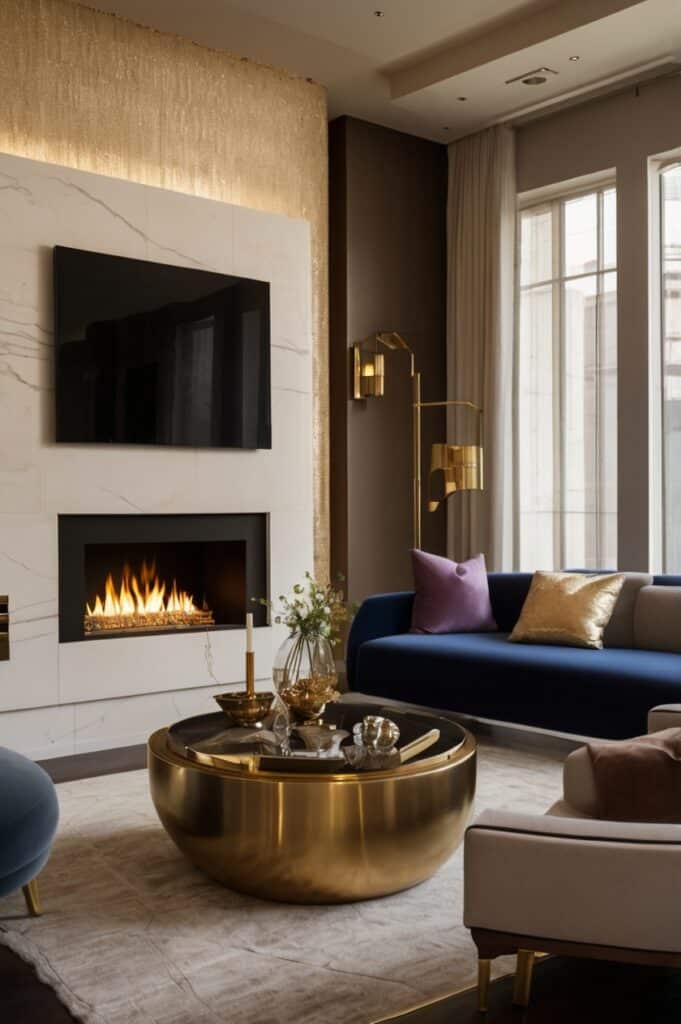 13. Metallic-Toned Fireplace Surrounds