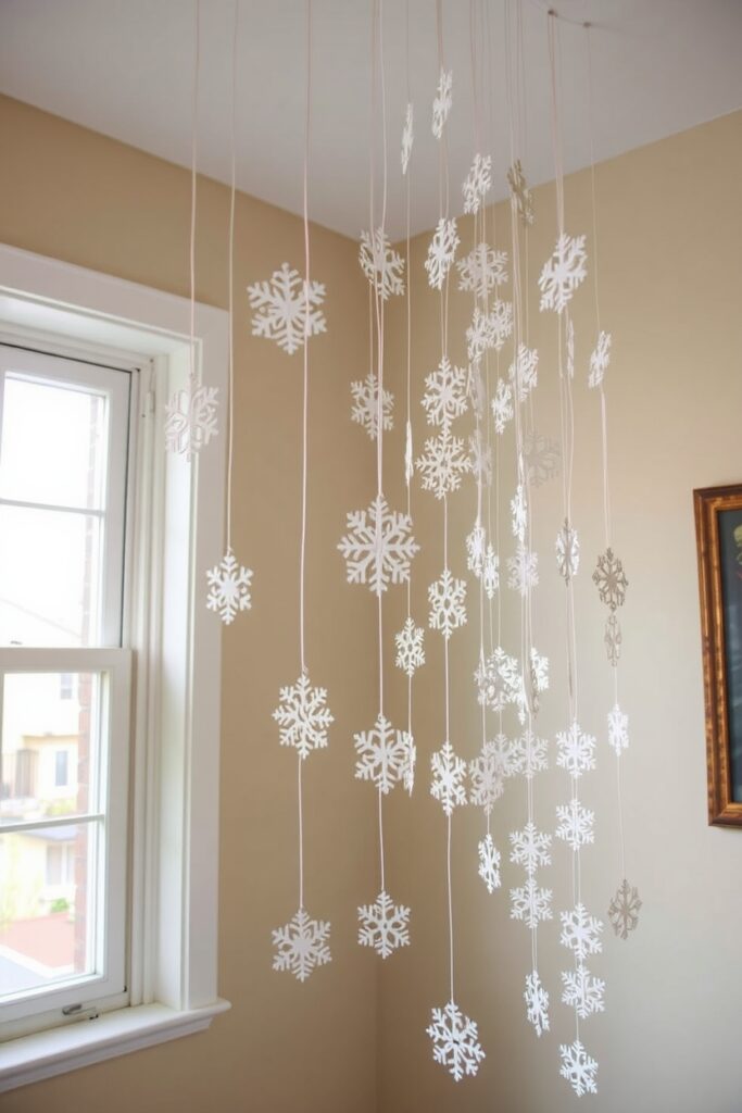 11. Hang a “Ceiling Snowfall” from Just One Corner