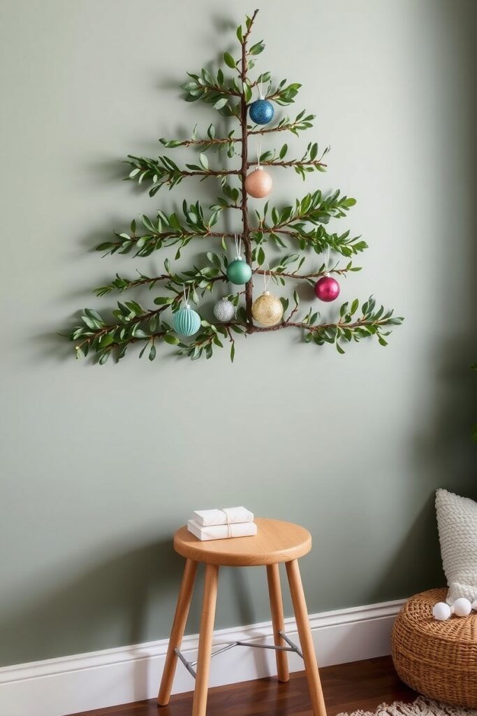So try a half Christmas tree hung flat against a wall.