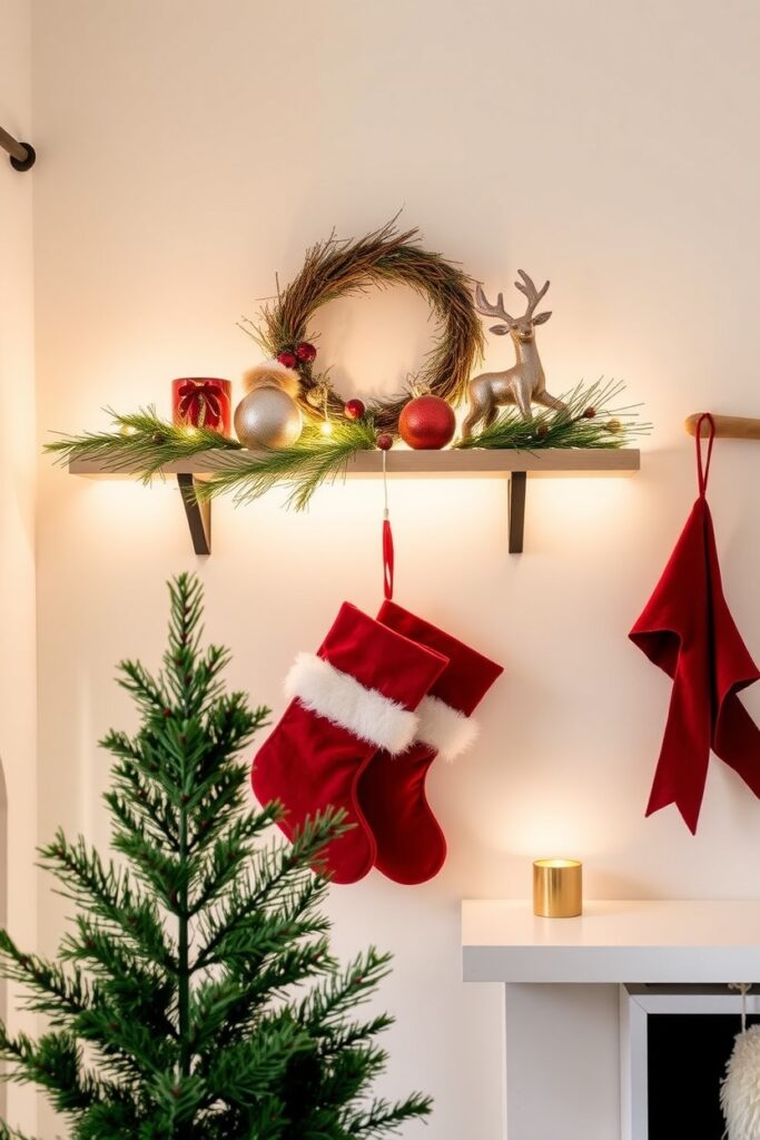5. Add a Soft-Glow Christmas Shelf Above Eye Level
