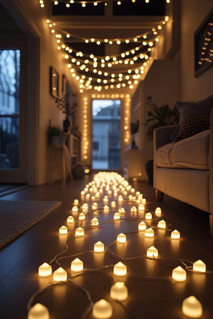 Line a small path on the floor with LED tea lights.