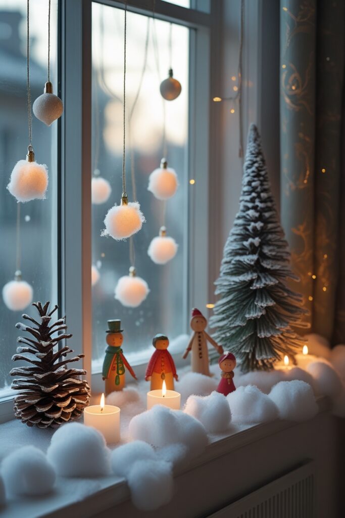 A small window ledge can turn into a whole Christmas universe if you let it.