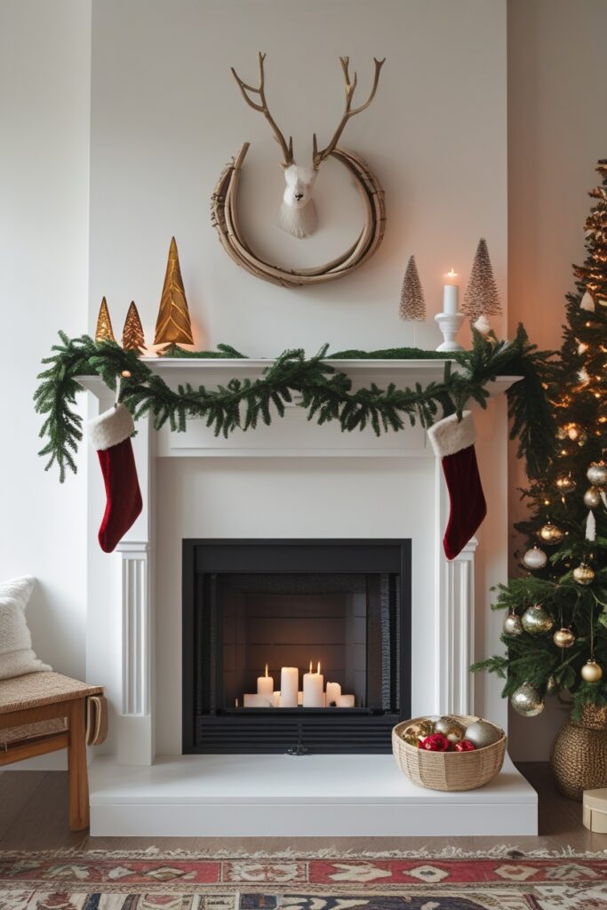 Now decorate it for Christmas with a mini garland, a single stocking, and a holiday throw draped too casually.