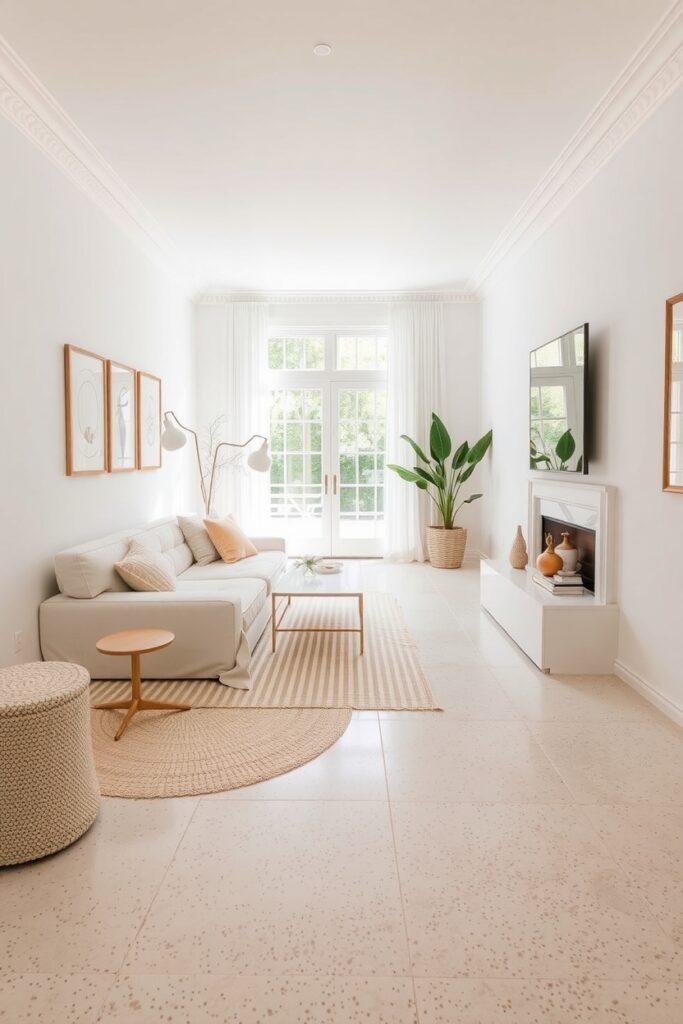 Add a low-profile white sofa with rounded corners. Floating furniture makes the space feel bigger, lighter, almost like it’s levitating.