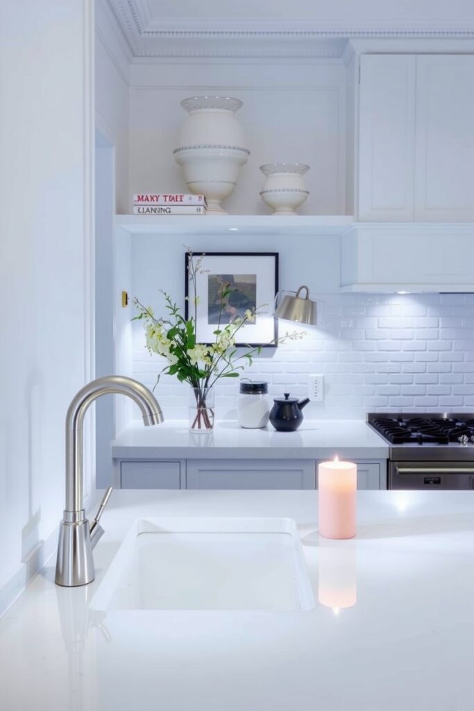 The glow should make every cream surface blush slightly, like it’s shy but happy to be seen.