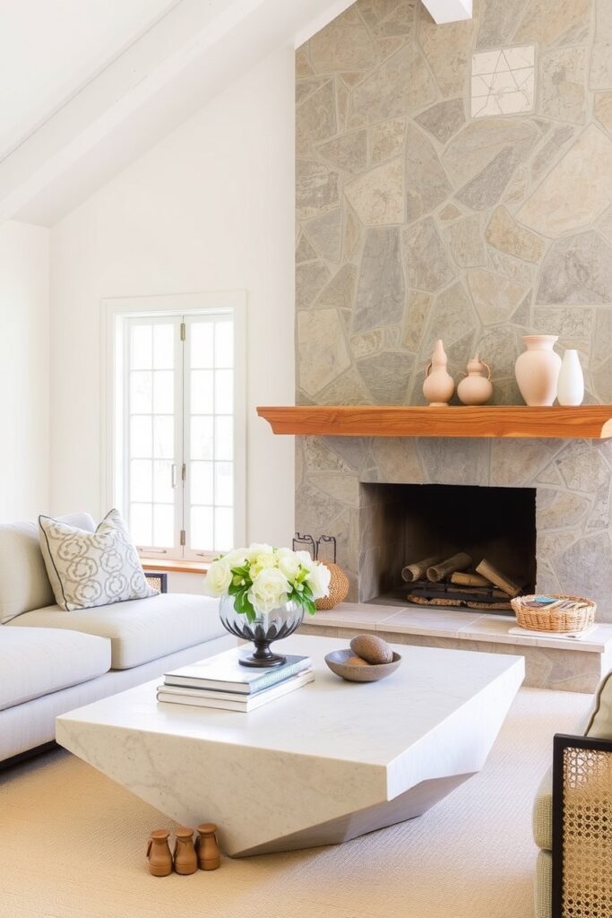 A small stone coffee table can change the entire personality of the room. Suddenly it feels grounded, real, and ancient.