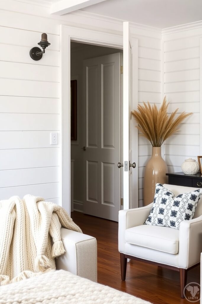 Imagine creamy shiplap walls with clean white furniture lines. Add a chunky knit throw, maybe a clay vase filled with dried grass.